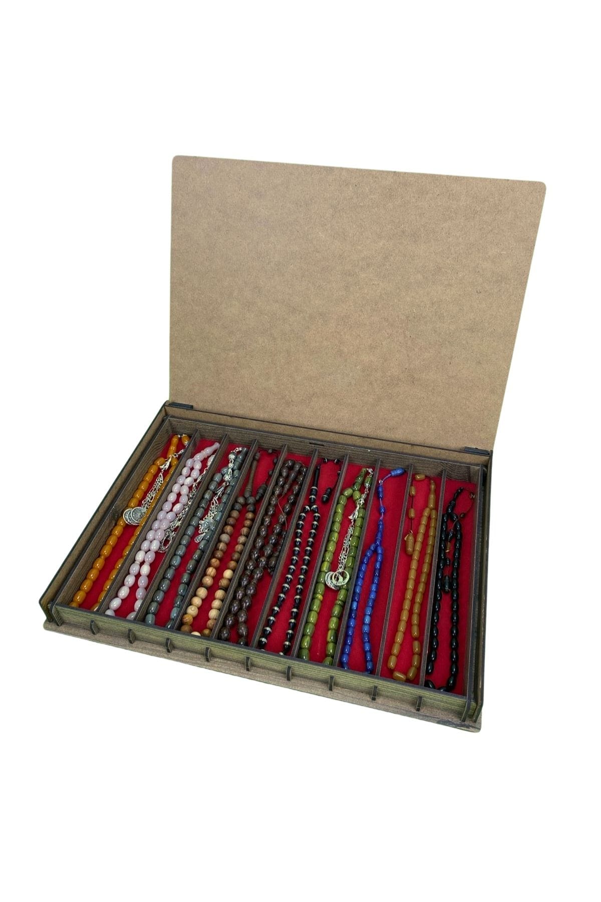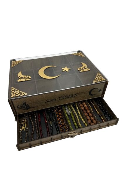 - Tesbih koleksiyonunuzu şık ve düzenli bir şekilde saklayabileceğiniz bu özel kutu, hem işlevsel hem de estetik detaylarıyla öne çıkıyor. Kişiye özel isim yazdırılabilir özelliği sayesinde anlamlı bir hediye seçeneği olarak da tercih edilmektedir.