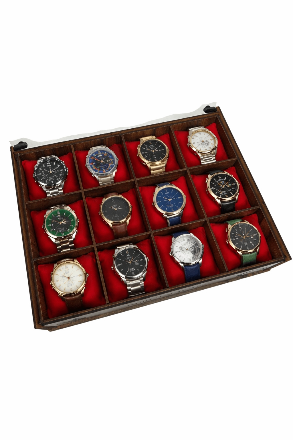 ✅ Kişiye Özel İsimli Saat Koleksiyon Kutusu – 12 Saat Kapasiteli Yastıklı | Ahşap & Pleksi Tasarım