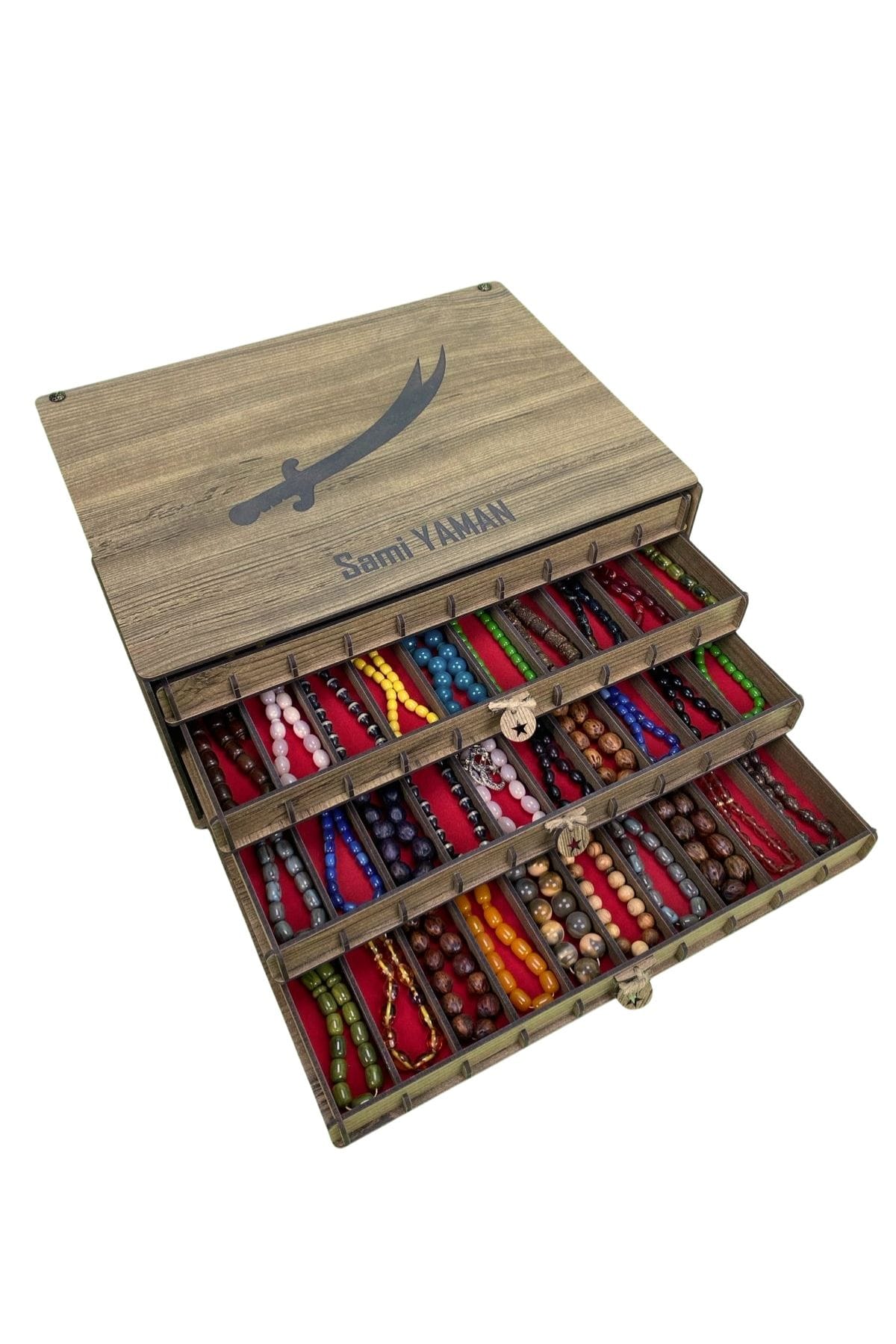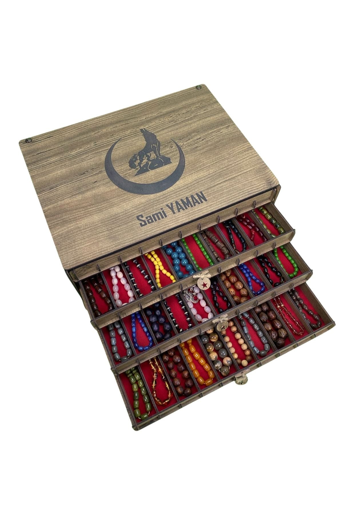 ✅ Kişiye Özel İsimli Tesbih Koleksiyon Kutusu – 40 Tesbih Kapasiteli | Ahşap Tasarım